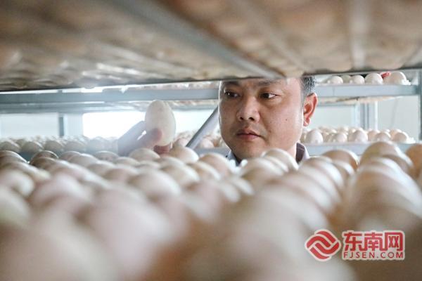 在文亨镇,明源养殖专业合作社则探索出“生态+科技”的养殖新路。走进合作社的繁育基地,智能孵化设备满负荷运转,恒温恒湿的仓内,种蛋经28天培育就能孵出毛茸茸的鸭苗。“养好鸭,种源是关键。”罗炳江介绍,合作社不仅为成员和散户提供优质鸭苗,还与福建省农业科学院畜牧兽医研究所合作,2024年开展技术培养和训练300余人次。北团镇养殖户罗大姐感慨:“以前养鸭靠‘老经验’,培训后才懂科学饲喂,鸭子长得好,收益也翻了番!”