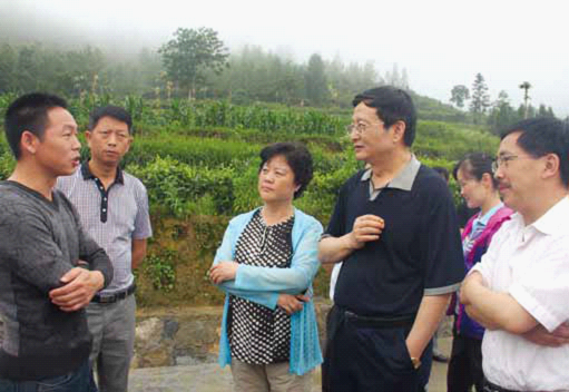 省人大常委会秘书长刘一民( 左四) 一行在铜仁展开执法检查。拍摄/ 石洁